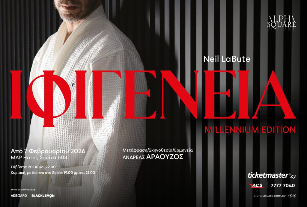 Ο Ανδρέας Αραούζος αναμετριέται ξανά με τον συγκεκριμένο ψευδο-Αγαμέμνονα, 18 χρόνια μετά τις αγγλόφωνες παραστάσεις που δόθηκαν το 2008, στην Λευκωσία, την Αθήνα, το Λονδίνο, το Παρίσι και την Δαμασκό. Τώρα, σε ελληνική μετάφραση και σκηνοθεσία δική του, η παράσταση παρουσιάζεται σε μια μοναδική site-specific εμπειρία για το θεατή στο ξενοδοχείο MAP στην καρδιά της Λευκωσίας. Η «Ιφιγένεια: Millennium Edition» θα ξεκινάει από το μπαρ του Scale Restaurant στο ισόγειο, όπου οι θεατές θα λάβουν ένα ποτήρι κρασί. Θα ακολουθήσουν τον ηθοποιό στη Σουίτα 504 στον πέμπτο όροφο, για να ακούσουν τη συναρπαστική εξομολόγησή του, με θέα το φωτισμένο τείχος της Λευκωσίας.